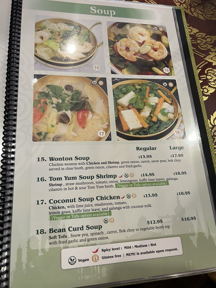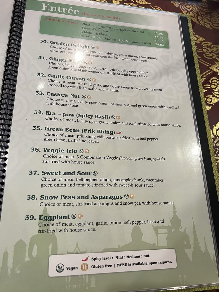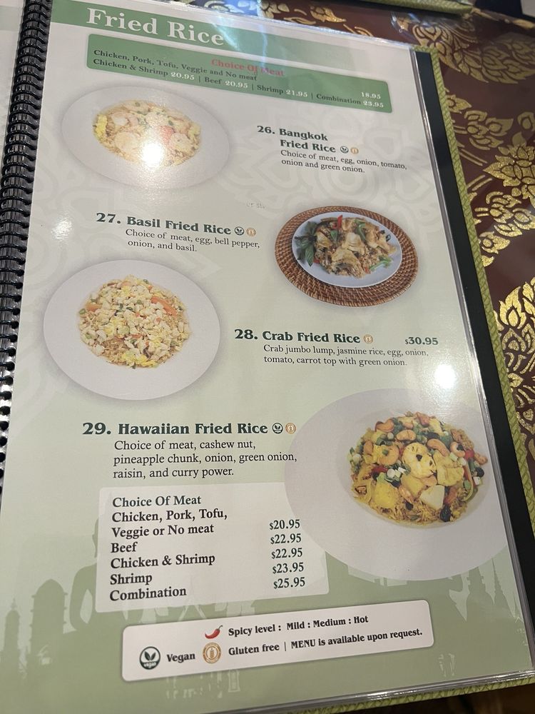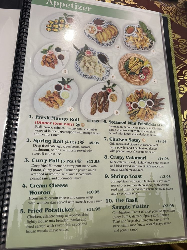 Introducing the menu at The Basil Restaurant, located in Carson City, Nevada. This Asian-owned establishment offers a wide range of vegan and vegetarian options, making it a great choice for those with dietary restrictions. The restaurant also provides delivery, takeout, and catering services. Customers praise the friendly service, flavorful dishes like the chicken green curry and mango rolls, and the cozy atmosphere. The creamy coconut soup and new menu items like soft shell crab are particularly popular. With gender-neutral restrooms and open seating, The Basil aims to create an inclusive and welcoming environment for all diners. Don't miss out on the delicious Thai cuisine and vibrant flavors at The Basil Restaurant.